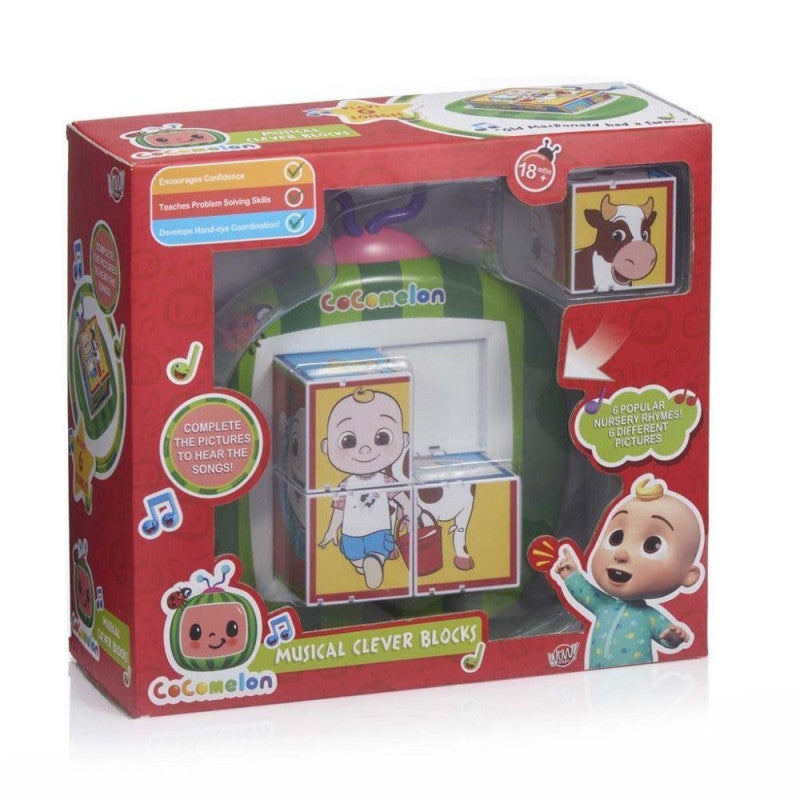 Med CoComelon Musikaliska Klossar blir varje pussel en musikalisk belöning! Vänd klossarna rätt, bygg en bild med motiv från CoComelon, och när allt stämmer – då spelas en av sex olika sånger. Ett pedagogiskt och underhållande lekset som kombinerar bild, ljud och motorik för de allra yngsta.