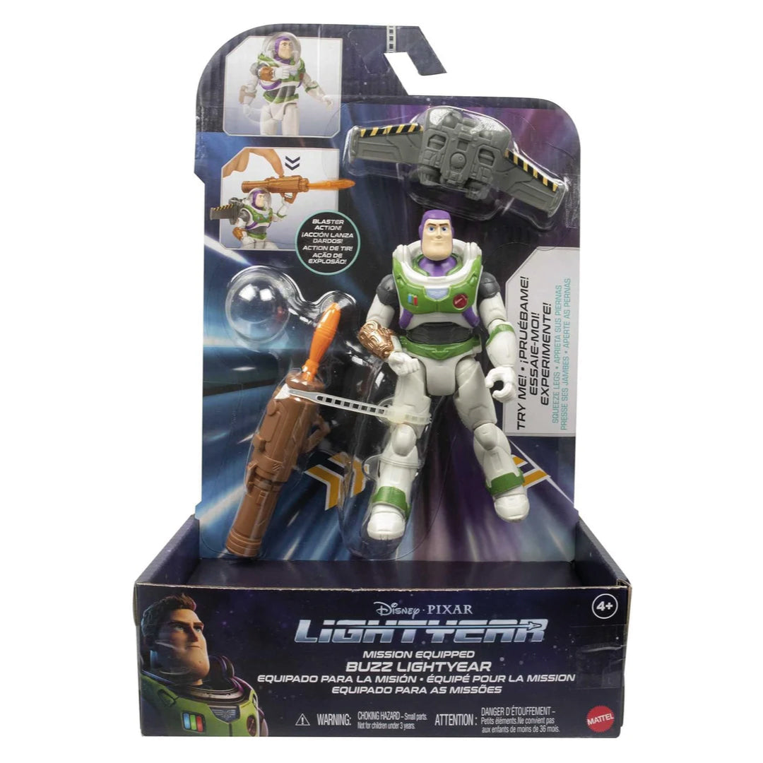 Återskapa spänningen från Disney Pixars Lightyear med Buzz Lightyear Mission Equipped! Med jetpack, blaster och projektil är Buzz redo för strid, spaning och teamwork. Tryck ihop benen för att aktivera hans skjutan-position – och låt äventyret börja!