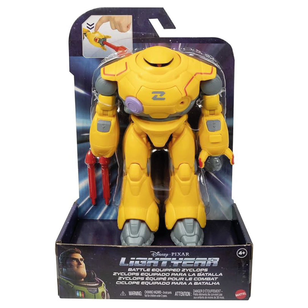 Återskapa rymdäventyret från Disney Pixars Lightyear med den autentiska Zyclops-figuren! Med mekanisk action, projektiler och teleporteringsskivor är Zyclops redo att möta Buzz Lightyear i episka strider. Tryck på knapparna för att skjuta iväg missiler – eller aktivera teleportfunktionen direkt från bröstet!
