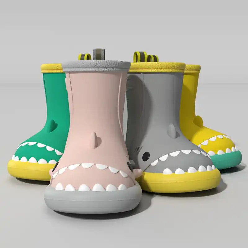 Hoppa i vattenpölar och ta dig an regniga dagar med stil och humor! Dessa lekfulla hajgummistövlar är vattentäta, halkfria och fulla av personlighet – perfekta för små och stora äventyrare. Med bekväm passform och slitstark design blir de snabbt en favorit i garderoben. Oavsett om det är skoldag eller skogsäventyr – låt hajstövlarna sätta lite extra bett i varje steg!