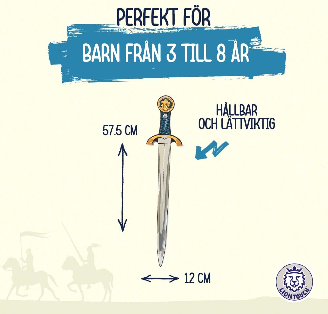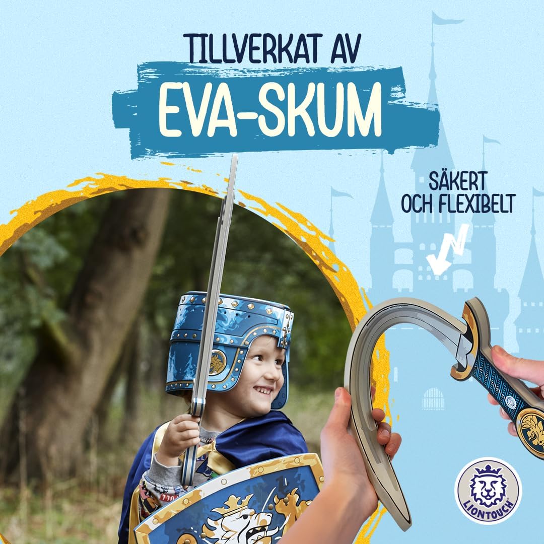 Det blå riddarsvärdet från Liontouch är den perfekta följeslagaren för små hjältar med stora uppdrag. Tillverkat i mjukt EVA-skum med dansk design och historisk känsla – redo för äventyr, rollspel och kungliga dueller.