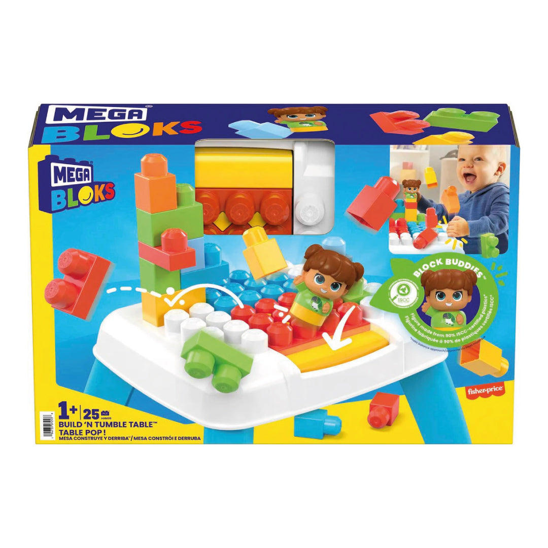 Mega Bloks Bygg- och Vältbord är ett färgglatt lekbord där små byggare får skapa, stapla och sedan välta sina mästerverk med ett knapptryck! Med stora, greppvänliga klossar och roliga funktioner blir varje lekstund ett kreativt äventyr. Perfekt för nyfikna händer och stora fantasiutbrott!