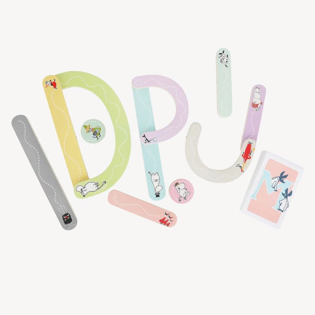 Utforska alfabetet med Mumin Bokstavslek – ett roligt och lärorikt spel där barnen kan bygga alla bokstäver med bara 11 delar! Delarna är tillverkade i trä med inbyggda magneter, vilket gör det enkelt att sätta ihop bokstäverna. Skriv ditt namn, öva på alfabetet eller följ korten – varje bokstav blir ett nytt äventyr med Muminfigurerna som följeslagare.