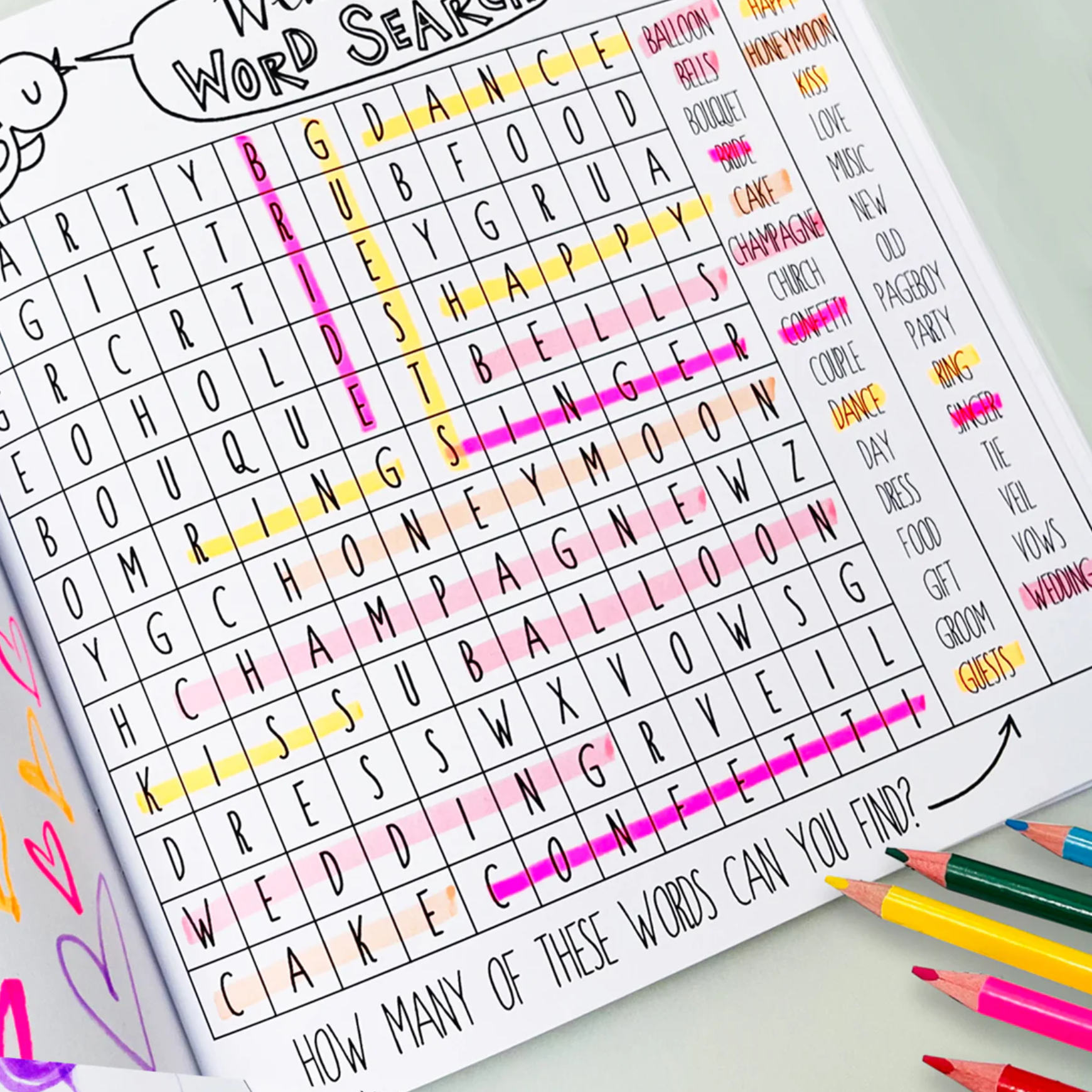 🎉 12 sidor med bröllopstema – pyssel, spel och klurigheter